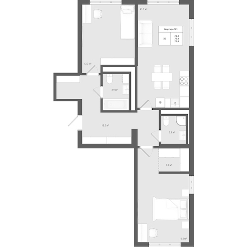 Планировка квартиры в ЖК на Мосфильмовской улице